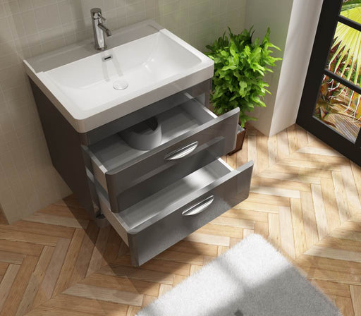 Colour: Grey Features: Deep Bowl For Easy Washing Polymarble Basin Soft Close Drawers Chrome Handles Soft Curved Edges Wall Mounted Measureme...
